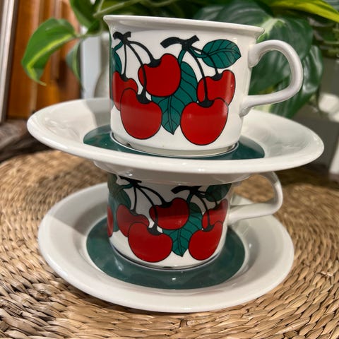 Arabian Kirsikka-sarjan kahvikuppipari, 1980-luvulta, hyväkuntoinen