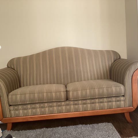 Reilun kokoinen puusohva, jonka sisälle kannen alle voi kätkeä ylim. tavaraa piiloon. Käy myös parisängyksi, vierasvaraksi. Tummanruskean sävyinen.