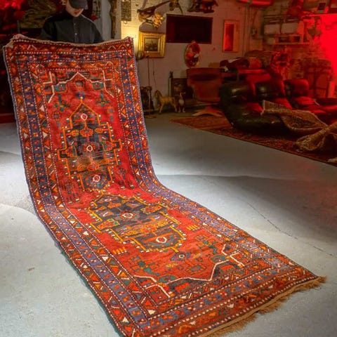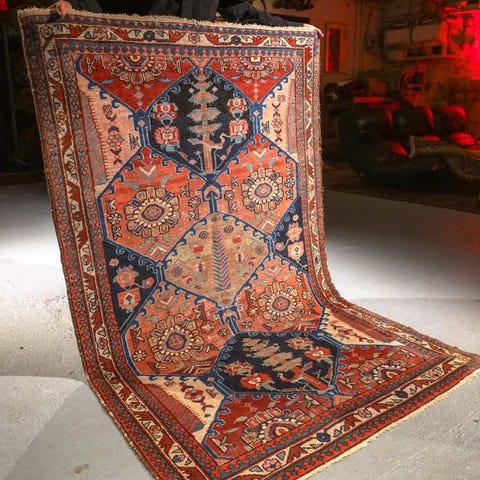 käsinsolmittu itämainen aitomatto villamatto vintage persialainen aito villa hamadan ruskea oranssi sininen keskikokoinen rustiikkinen matto käsinkudottu käsin käsintehty käsityö antiikkimatto vintagematto helsinki helsingissä
