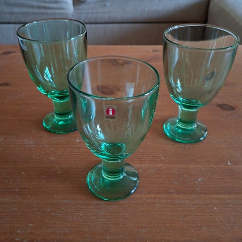 Iittalan 8 kpl vaaleanvihreitä Verna jalallisia juomalaseja Iittalan vanhalla tarralla ; vetoisuus 22cl, suunnittelija Kerttu Nurminen. Uuden veroiset vain vähän käytetty.