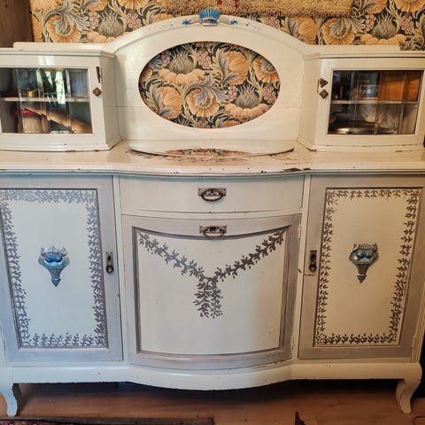 Normaalista poikkeava upea vanha peililipasto myytävänä. Kunto ikäisekseen hyvä. Pinta aikanaan kunnostettu. Muutamia reunakolhuja löytyy. Avain tallessa ja lukitus toimii kaapin ovessa. Sisusta siisti eikä ole hajuja. Peiliosa irroitettava.