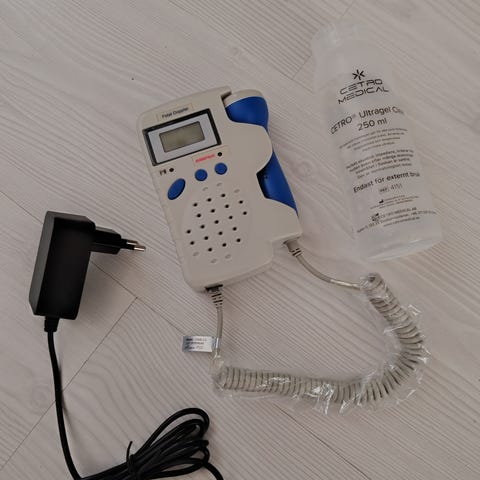 Dopplerlaite vauvan sydänäänien kuunteluun raskausaikana. Ollut erittäin vähäisellä käytöllä.
