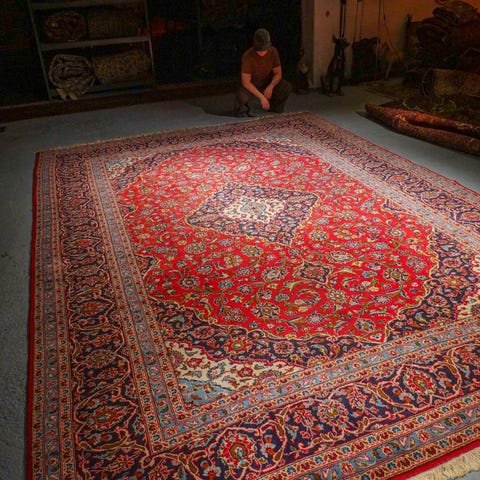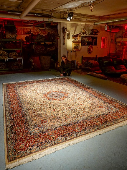 käsinsolmittu itämainen aitomatto villamatto vintage persialainen aito villa kirman suuri palatsikokoinen palatsimatto punainen kukka kukkaismatto kukkakuvioinen matto käsinkudottu käsin käsintehty käsityö antiikkimatto vintagematto helsinki helsingissä