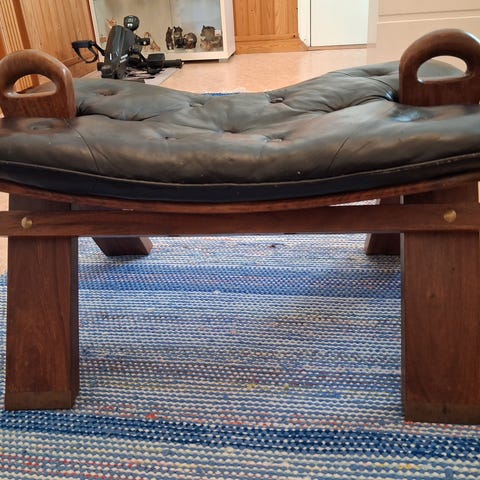 Puinen saunan jakkara, jossa on leveät, rimoitetut istuin- tai askelupinnat. Soveltuu käytettäväksi saunassa istuimena tai askelmana lauteille nousemiseen. Rakenteessa on tukevat jalat ja yksinkertainen, suorakulmainen muotoilu.
