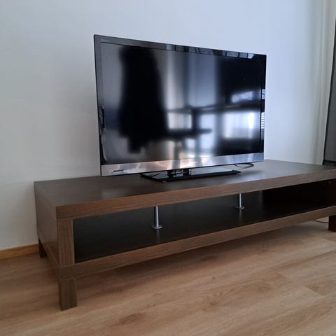 Ikean mustanruskea Lack tv-taso. Takareunassa lednauhan takia irronnut maalia ja pieniä käytön jälkiä. Nouto Kalevasta.