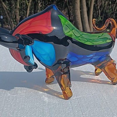 Veistos, murano - mondriaan stijl glazen stier - 19 cm - Lasi