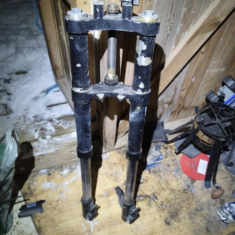 Kuvannukainen ok kuntoinen usd keula, merkistä ei tietoa. Sopii ainakin Gileraan ja Derbiin.