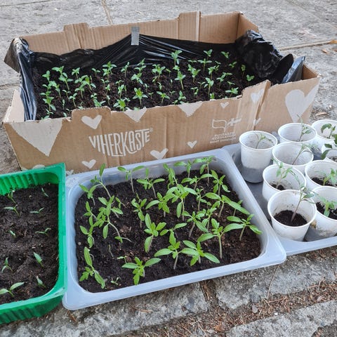 Hyvässä kasvussa olevia Nukkatyräkin taimia. Nämä ovat noin 10 cm korkeita, mutta voivat kasvaa hyvässä hoidossa parimetrisiksi :)
