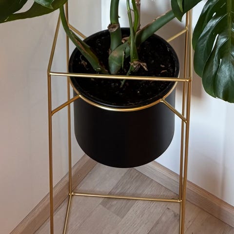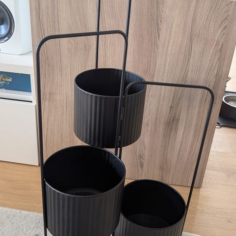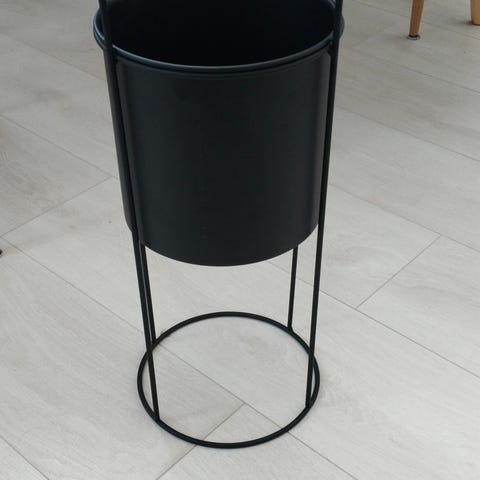 IKEA kukkaruukku metallijalustalla. Musta ruukku, jossa on erillinen metallinen teline. Sopii huonekasveille sisäkäyttöön, ruukun halkaisija 21 cm ja korkeus noin 30 cm. (kasvi ei kuulu pakettiin 😅)