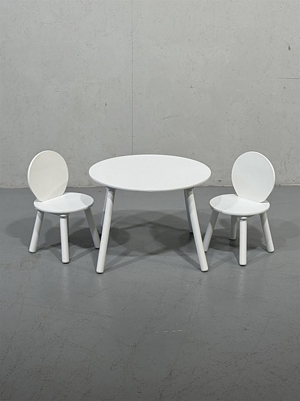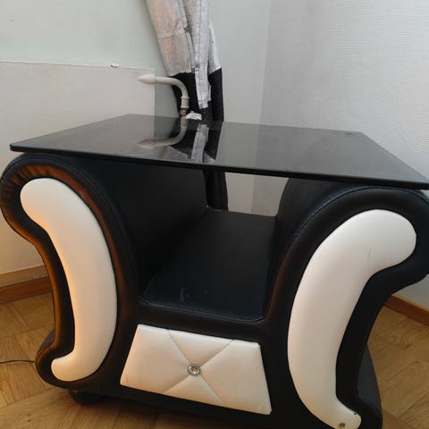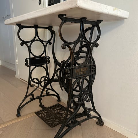 Pöytä on hyvässä kunnossa ilman näkyviä vaurioita. Pintakulumaa hieman ja taso liikkuu sivuille hieman.