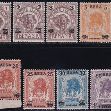 Italian Somalia 1926 - Leijonat ja elefantit yläleimattuina. con sbarrette