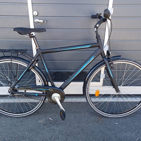 Huollettu 7-vaihteinen citypyörä. Shimano Nexus-napavaihteet. Jalkajarru takarenkaalle, vannejarru eturenkaalle. Etukori. Uudet ketjut, satula, vaihdevaijeri ja jarruvaijeri. Renkaat 28". Runkokoko 53 cm (sopiva yli 165 cm pituisille).