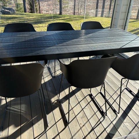 Parvekekalustesetti pöytä ja tuolit.
