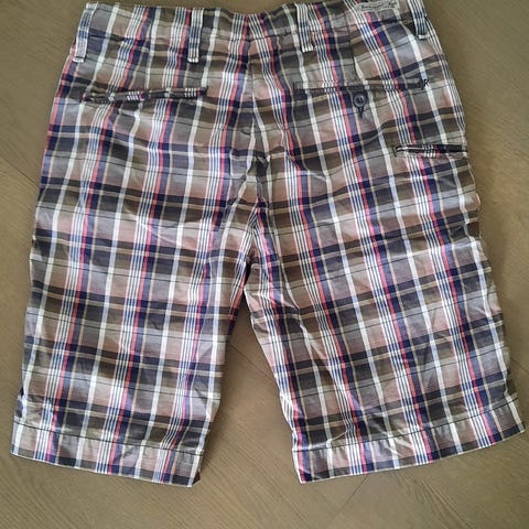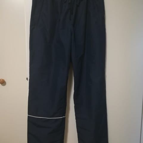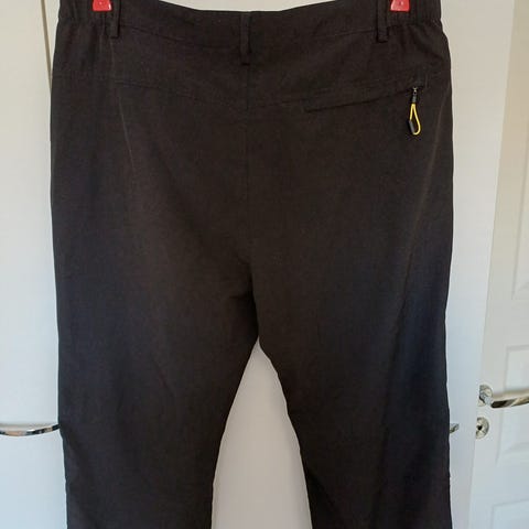 Vyötärö 106 cm, vetoketju ja sekä etu- että takataskut.
