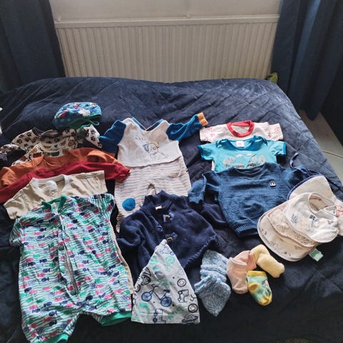 Vaatepaketti vauvalle, meillä oli koossa 62-68 käytössä. Enemmän kesävaatteita.