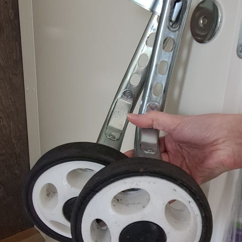Hyväkuntoiset säädettävät apupyörät pikkupyörään.