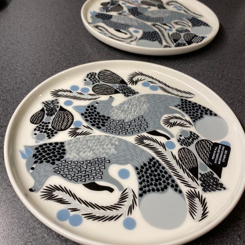 Myydään 2 kpl uusia Marimekko ketunmarja harmaa 20 cm lautasia.