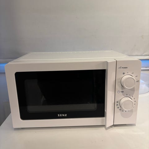 Samsung mikroaaltouuni musta. Laitteessa on etupaneelissa digitaalinen näyttö ja painikkeet eri toiminnoille, kuten sulatus ja pikakäynnistys.