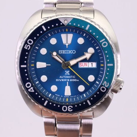 —// INTRO //—*** " Blue Lagoon - Limited Edition, Only available in Southeast Asia ******Rare Made in Japan "J Version", which is only available in a few parts of Asia only. Mostly are K versions, which are made in Southeast Asia***—// DESCRIPTION //—Model: Seiko Prospex SRPB11J1 Blue Lagoon Turtle Men's Diver Automatic Watch SetMaterial: Stainless SteelDial Color: Torquise BlueDial Size: 44mm (without crown)Fitting: 16.5cm wrist. 3 extra links to extend 3.0cm. Movement: Seiko 4R36 automatic movementPower Reserve: 40 HoursFunctions: Time Keeping, hacking, manual and automatic winding, diver's rotatable bezel, luminous hands and hour indexes, hacking, luminous hands and hour indexes, screw-down crown. —// DELIVERY CONTENTS //—Original Box: Yes *(Seiko box, as shown in pictures)Original Papers: Yes *(guarantee card and booklet, manual)—// CONDITION //—Wear on Case: None / Insignificant *(Close to flawless condition)Wear on Caseback: Insignificant / Minor *(with minor wears on the caseback, hairlines and such)Wear on Crystal: None / Insignificant *(Close to flawless)Wear on Dial: NoneWear on Hands: NoneWear on Bezel: InsignificantWear on Crown: None / Insignificant Wear on Bracelet or Strap (Fitting stated above) : Insignificant (12 links attached with no extra links, Seiko S/S bracelet. Minimal hairlines)Wear on rubber straps: Minor *(Seiko Z22 rubber straps, with light scratches on the metal buckle and keeper, minor wear on the rubber)CONDITION RATING STANDARD:None (Best) —> Insignificant —> Minor —> Medium —> Heavy —> Damaged (Worst)— // OVERALL RATING //—RATING: A+RATING GUIDELINE:N [As Brand New] Item has never been usedS [Superior] Item has like-new condition, with very slight to no signs of wear.A+ [Excellent] Item has been lightly used. Mostly hairline marks.A [Great] Item has slight scratches and wear, but looks greatB+ [Good] Item has scratches and moderate signs of wear.B [Fair] Item has scratches and dings all over. Still in good working condition.V [Vintage] Item is more than 10+ year old and used heavily. Signs of wear everywhere, but functionalND [SALVAGE] Item is non-functional. Needs repair or for parts only.—// SHIPPING METHOD //—SHIPPER: FedEx Economy—[[[ NOTES TO CUSTOMERS ]]]—[PHOTOS]- All photos are not retouched (except for serial numbers hidden for security reason). Any defects not mentioned in the description but visible in the pictures will be considered as described. Pictures speak a thousand words, so we kindly ask you to look at the pictures carefully before bidding as they form an integral part of the description. I value my relation with customers so I do not want to become your disappointment when items is received with undesirable results.[ACCURACY]- Accuracy is tested on every watch at horizontal position (dial face up) at fully wounded power reserve and is deemed satisfactory for keeping time before sending out of our shop. Some factors which might affect accuracy include length of time worn on the wrist, arm movement, and tension on the power spring. Watches that are more than 10 years old might experience a larger accuracy variance and inconsistency because of mechanical wear.[AUTHENTICITY]- All watches I sold are authentic. I try to label all aftermarket parts which I can identify and at the best of my knowledge. Please evaluate the item accordingly to the pictures as they are taken from the actual item you will be receiving. Written description is only for auxil