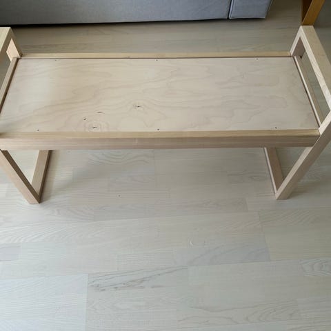 ruskea penkki kangaspehmusteella, pientä kulumaa kaikkialla. (Ei ole ikea eikä Birgitin suunnittelema, en tiiä miks pakottaa valitsemaan jonkun)