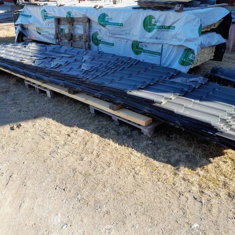 Uuden katon alta tiiliska kattopeltiä n.260m2.Päätylistatkin saa viedä jos tarve.Tarjotakkin saa!!