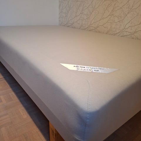 IKEA SULTAN sänky / runkopatja. Puinen runko ja vaaleasävyinen, valkoinen päällinen. Päällisessä näkyy käytön jälkiä ja tahroja, jotka on hyvä huomioida. Soveltuu käytettäväksi sellaisenaan tai esimerkiksi vierasvuoteena tai mökkisänkynä. 120 leveä ja 200 pitkä.