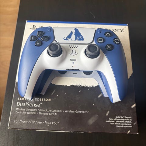 Myynnissä otsikonmukainen God of War -teemainen Sonyn Dualsense-ohjain. Pakkaus on avaamaton (sinettitarralla kiinni). Itse pahvipaketissa on muutamat pienet kolhut (kuvat). Ostettu Verkkokauppa.comista 18.1.2026 ja kuitin mukaan takuuta 12 kk eli 18.1.2027 asti. Ostokuitti tulee mukaan.
