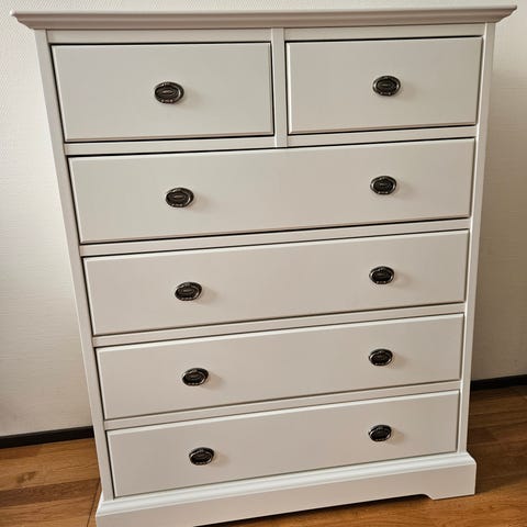 Valkoinen liinavaatekaappi.