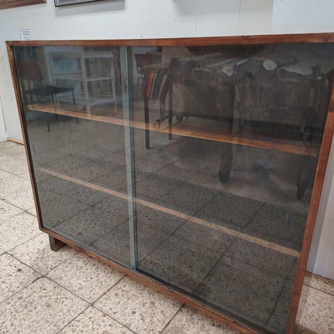 Upea 50-luvun vintage vitriinitiski myytävänä. Lasit on vaihdettu. Muilta osin alkuperäinen. Löytyy kuluneisuutta, kulmakolhuja ja lakkahilseilyä. Rakenteeltaan kaikin puolin tukeva. Kaksi pientä vetolaatikkoa puuttuu. Jalat irroitettavat. Lisäkuvia saatavilla.