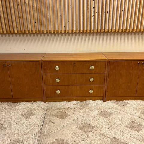 Hienokuntoinen 60-lukulainen kahdesta osasta koostuva teak(?) senkki.