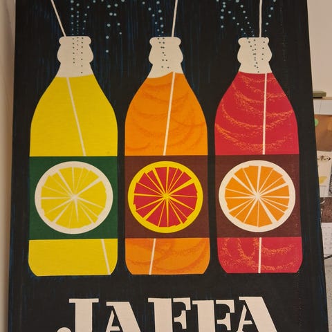 Jaffa taulu hintaan 20e. Pingotettu nuppineuloilla styroksille.