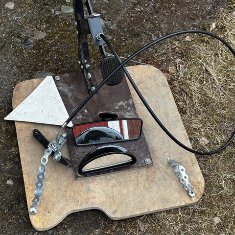 Siitä hyvässä kunnossa oleva opetuspoljin auton ajo opettelua varten. Erittäin tukeva! Ei jää inssi ainakaan jarrupolkimesta kiinni.