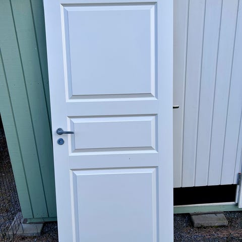 Hyväkuntoinen ääntä eristävä väliovi karmeineen. Koko 9x21.