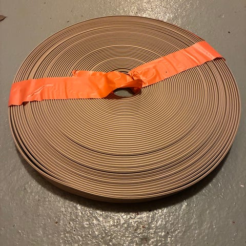 Vaijeri paksuus n. 6-7mm. Painosta päätellen voisi olla alumiinia? Toisessa rullassa noin 160m ja toisessa 75m