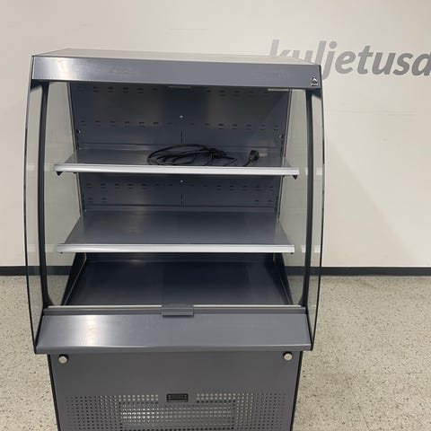 3 säädettävää hyllyä, ledivalot, lasiovet ottoaukoilla, pussi ja ottopihti telineet, hintakiskot.