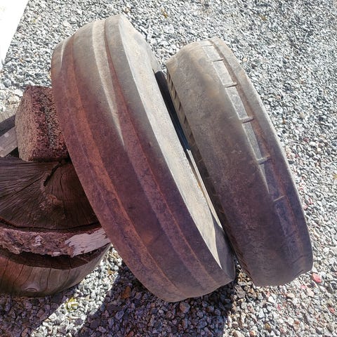 7.50 18" eturenkaat. Normi 6 pulttijako joten sopii moniin vanhoihin takaveto traktoreihin. Vanteet hyvät mutta ainakin toinen kumi puhki. Tarjota saa.