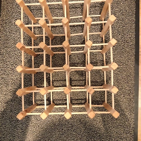 9 pullon viiniteline ja pieni laatikko.