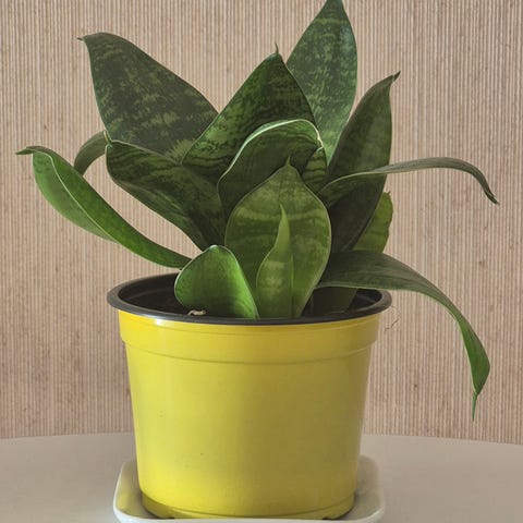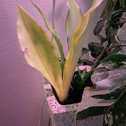 Anopinkieli on helppohoitoinen viherkasvi, joka sopii sisätiloihin. Kasvilla on pitkät, pystyyn kasvavat vihreät lehdet, joissa on keltaiset reunat. Kasvi on istutettu valkoiseen ruukkuun. Sopii esimerkiksi olohuoneeseen, makuuhuoneeseen tai työtilaan tuomaan vihreää ilmettä. Kasvi viihtyy valoisassa paikassa ja sietää myös kuivuutta hyvin.
