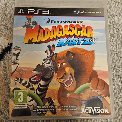 Playstation 3 DreamWorks Madagascar Kartz peli. Rattipeli / kartingpeli, jossa hahmoja Madagascar-elokuvista. Ikäraja PEGI 3. Levy Blu-ray-muodossa ja myyntipakkauksessa. Yhteensopiva Playstation 3 -konsolin kanssa.