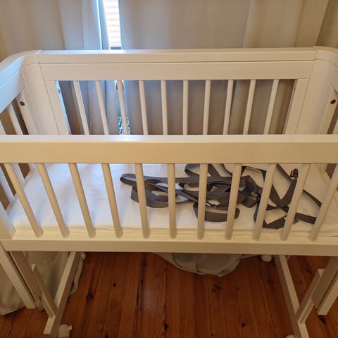 JLYn Future 2-in-1 -sivuvaunusänky on käytännöllinen uni- ja leikkipaikka perheen pienimmälle. Tässä sängyssä pikkuisesi voi nukkua välittömässä läheisyydessäsi. Sängyn korkeutta voi säätää ja yksi sen seinistä on avattava, jonka ansiosta pystyt muokkaamaan siitä sopivan omaan sänkyysi nähden. Älykkään vetoketjun ansiosta sängyn pohja voidaan irrottaa ja pudottaa verkkokangas lattialle leikkikehän luomiseksi. Sänkyä on helppo liikuttaa neljä pyörän ansiosta. Pyörät voidaan lukita silloin kuin sänkyä käytetään leikkikehänä.