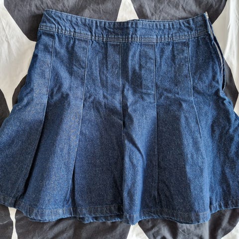 Ihana farkkuinen hame. Ei kuitenkaan farkkukangasta vaan kevyempää materiaalia. Joustava vyötärö.