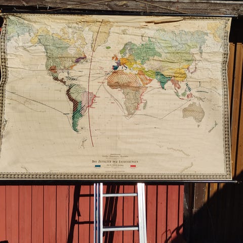 Vanha opetuskartta Maailman siirtomaat 17. ja 18. vuosisadalla seinäkartta