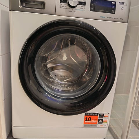 Suoraan käytöstä LG:n kuivaava pesukone myyntiin. Tänään ajettu läpi 95 asteen ohjelma tyhjällä rummulla ja pyykkietikalla. Nukkasihti putsattu.