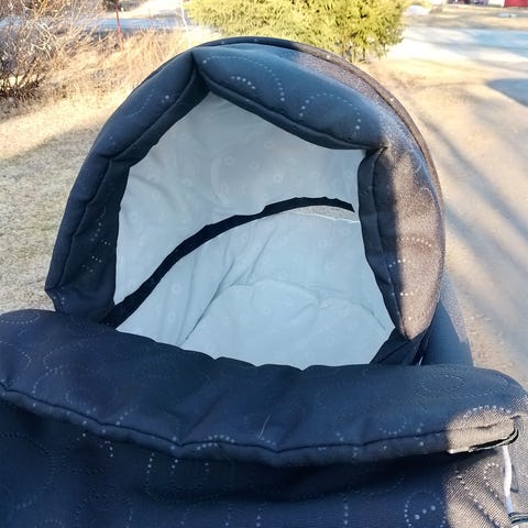Lastenrattaat, joissa sini-oranssi ruutukuvioinen kangas. Vaunuissa on neljä suurta pyörää (uusittu), tavarakori alhaalla sekä säädettävä työntöaisa. Sopivat vauvan ja pienen lapsen kuljettamiseen erilaisilla alustoilla. Kangasosat pehmustetut ja vaunuissa on suojaava kuomu. Runko on metallinen ja väriltään tumma.