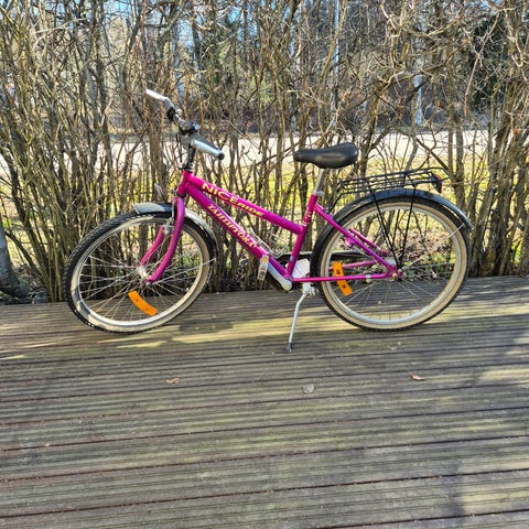 Jupiter lastenpyörä 24" renkailla. Väriltään valkoinen vihreillä yksityiskohdilla. Pyörässä on matala runko, käsijarru, jalkajarrut, pyörä on kolmivaihteinen (Nexus-vaihteet ohjaustangossa). Takana on tavarateline ja heijastimet. Pyörä toimii mainiosti ja myyntiin suoraan käytöstä uuden isomman tieltä. Renkaissa heijastimet tallella, käsijarruissa jarrupalat saattavat kaivata kohta vaihtoa, mutta meidän tyttö ei valitellut, yritin huomioida hinnassa vaihdot 10-20e. Ketjusuoja ehjä. Ajokunnossa ja ehjä seuraavalle suoraan ajoon. Saa testiajaa ja heti noudettavissa Mechelininkatu 3.
