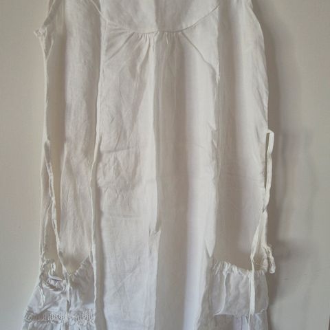 Porvoon Elmiinasta ostettu pellavamekko. Käytetty satunnaisesti ja nyt pesty ja silitetty uudelle omistajalleen. Ostettu S- ja M-kokoja käyttävälle mutta tarkemmat mitat näkyvät kuvissa.