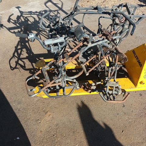 Mönkijän runko seuraavaan kotiin. Ei halkeamia tms. Eturenkaat ei pidä kunnolla ilmaa. Nouto