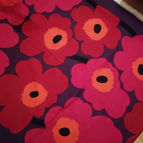 Marimekko unikko kangas. 100% luomupuuvillaa. Koko 147 cmx 270 cm. Unikon koko n.47 cm.