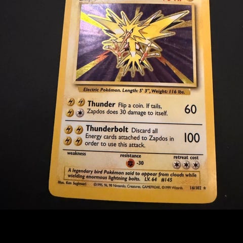 Myydään Zapdos 44/147 non Holo Aquapolis setistä. Kortti on hyvässä kunnossa. Takana vähän jälkiä.
