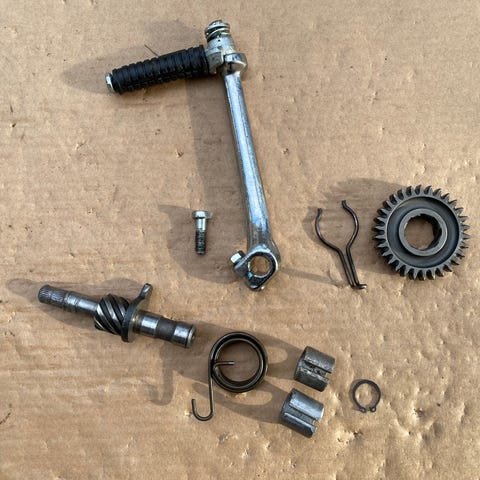 Lisäksi oikealla ylhäällä swingin alatuen molemmat alkuperäiset pultit. Molemmat vähän kärsineitä, mutta meneviä. Hinta yhteensä 3e.
